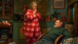 Debbie has news: Harry's dad isn't actually dead, he's just hiding in the loft so they can swindle the cash from his life insurance. Will Harry join these two twits in their scam?