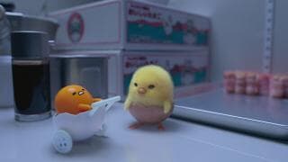 Having resigned itself to the fact that it will just end up on someone's plate, Gudetama just wants to be lazy all the time. But, swept up by the go-getting, overbearing chick Shakipiyo, it leaves the refrigerator and heads out into the world. Together, these polar opposites go on an adventure to find their mother!