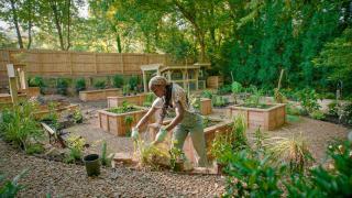 Jamila involves the whole family as she transforms a small backyard, turning their urban space into a green oasis. She introduces aeroponics and teaches them to grow colorful vegetables and herbs in both vertical towers and traditional in-ground beds.