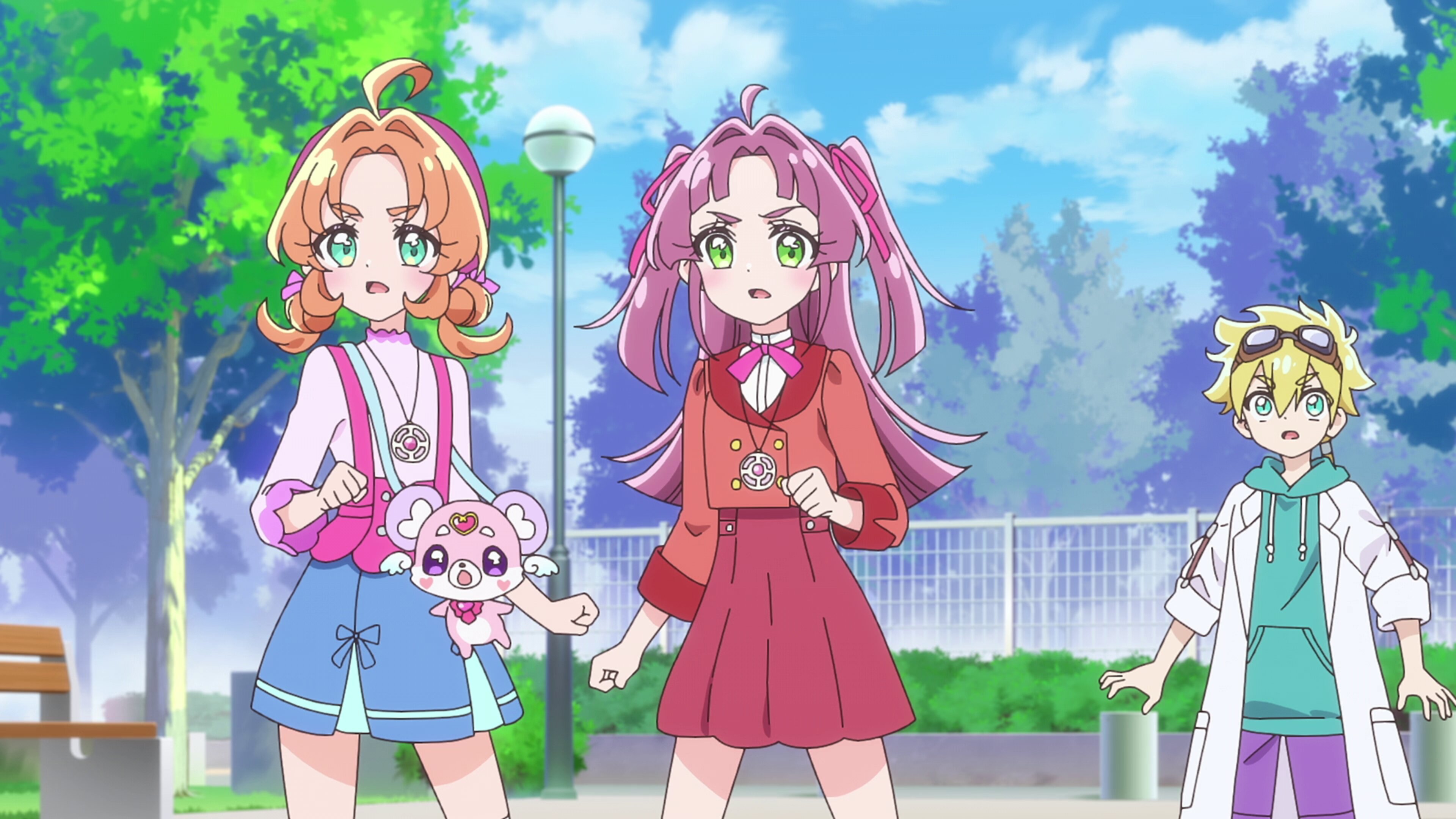 Anna Akechi is a 14-year-old second-year middle school student living in Makoto Mirai Town. On her birthday, guided by the fairy Pochitan and a pendant she finds in her room, she time-slips from 2027 to Makoto Mirai City in 1999. There, she meets Mikuru Kobayashi, a 14-year-old girl who dreams of becoming a detective. Suddenly, a robbery incident occurs, as someone has something precious to them stolen. Figuring that the "Phantom Thieves" may be responsible, and driven by the feeling that "I can't ignore someone in trouble", Anna and Mikuru transform into Cure Answer and Cure Mystique. Together, they become the Star Detective Precure, running the Cure It Detective Agency while solving mysteries and searching for a way for Anna to return to her original time.