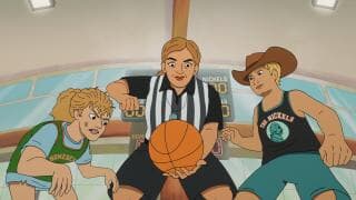 Lincoln and Sheila team up to coach a basketball team for sheltered homeschoolers while Irene combs the office for a talking robot toy named Baby Bertram.